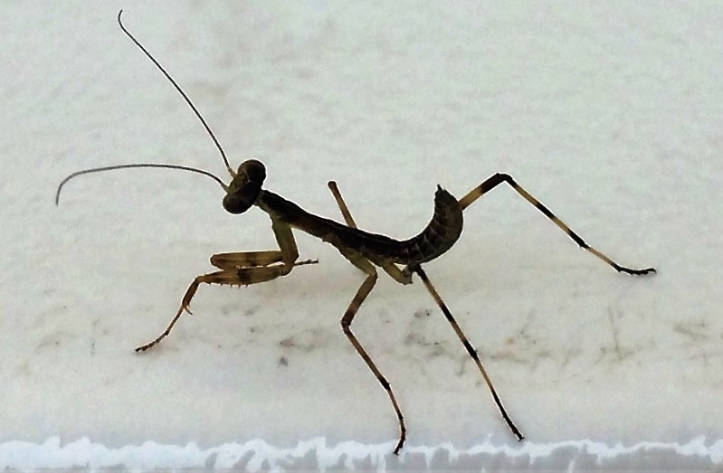 かき氷を食べていたらカマキリの子供がテーブルに来た